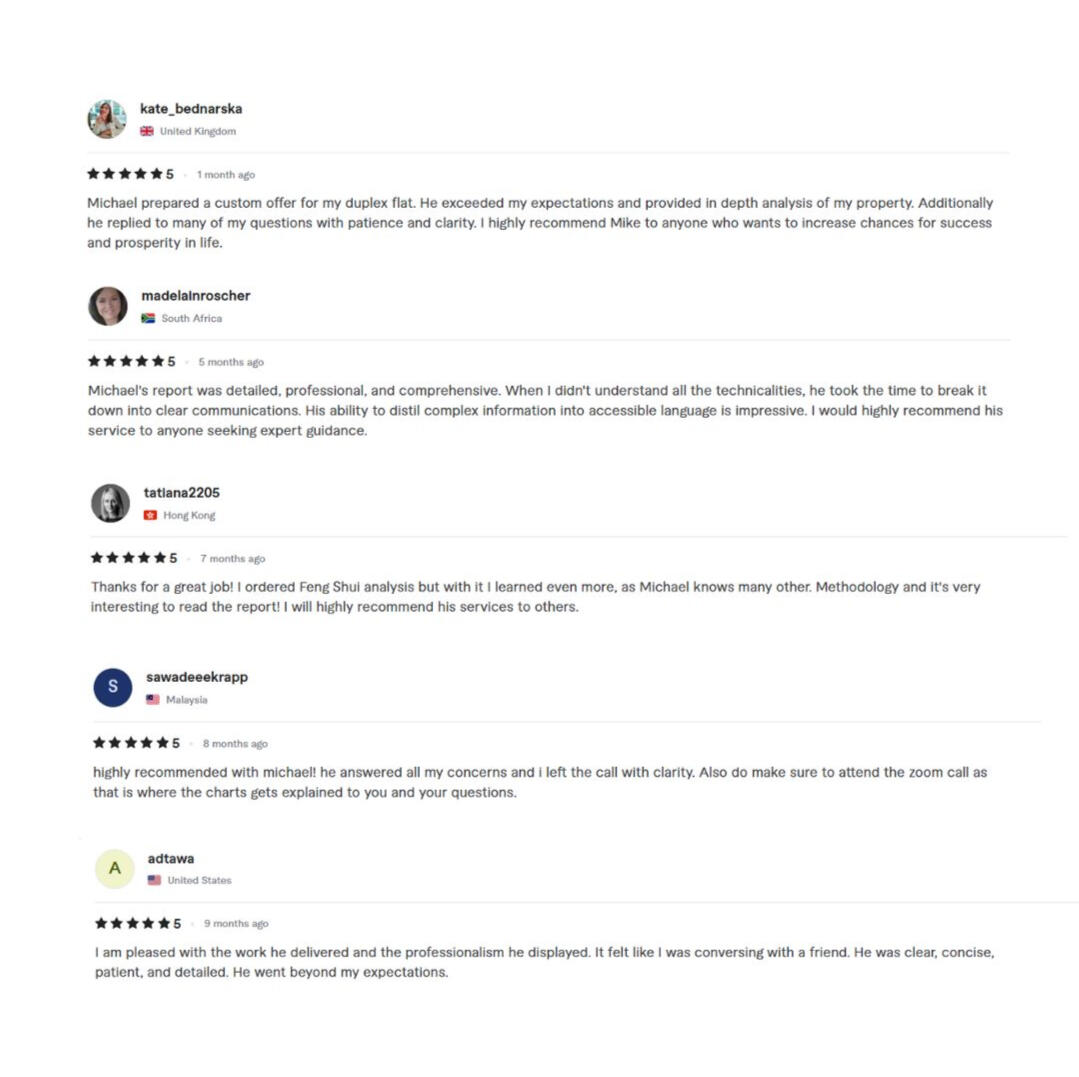 I’ve always been fascinated by the unseen forces that shape our lives—the way energy flows through spaces, how our birth charts reveal hidden potentials, and how timing influences major life decisions.Since 2010, I’ve dedicated myself to the study and practice of Feng Shui, Bazi, and Date Selection, helping individuals and businesses align with positive energy patterns. Over the past ten years, I’ve had the privilege of serving clients across 28 countries, earning numerous 5-star reviews for my accuracy and deep insights.My journey started with a simple desire: to help people navigate their lives with clarity and confidence using metaphysics.Today, I provide practical solutions for:✅ Feng Shui Assessments – Understanding the energy blueprint of homes and offices.